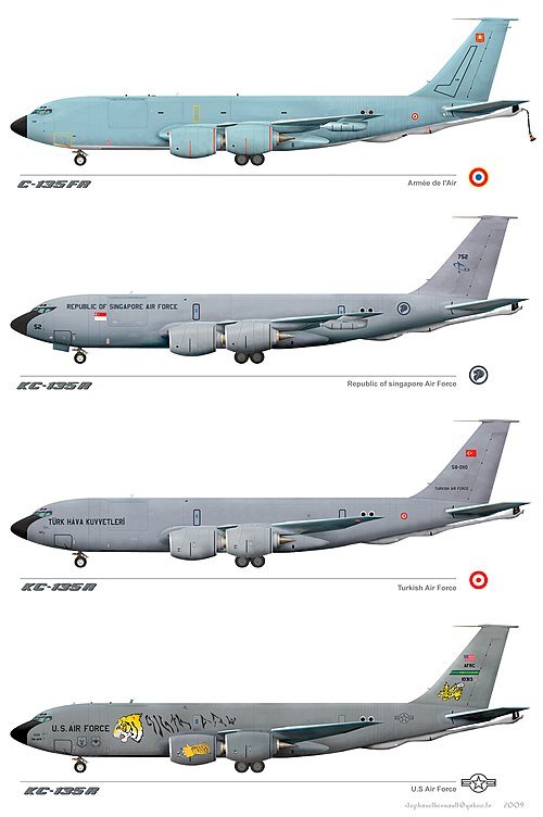 The aircraft was developed by Boeing, which designed the KC-135 based on the same early jet technology that later led to commercial aircraft like the Boeing 707.
